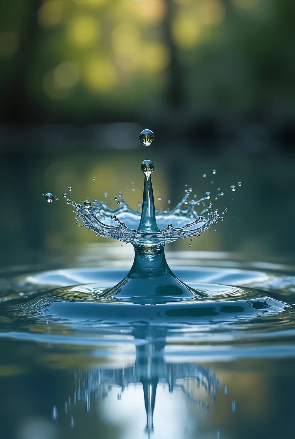 Blurred Background: The blurred background helps to isolate the central droplet and enhances its prominence in the composition.